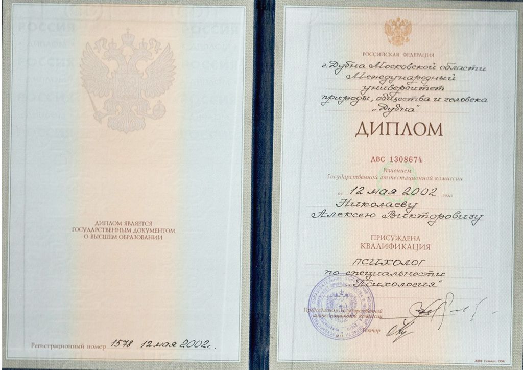 - Высшее образование - 2002 - Международный университет природы, общества и человека «Дубна»