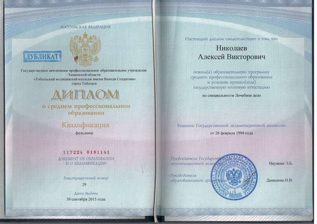 - Среднее образование - 2015 - Тобольский медицинский колледж имени В. Солдатова